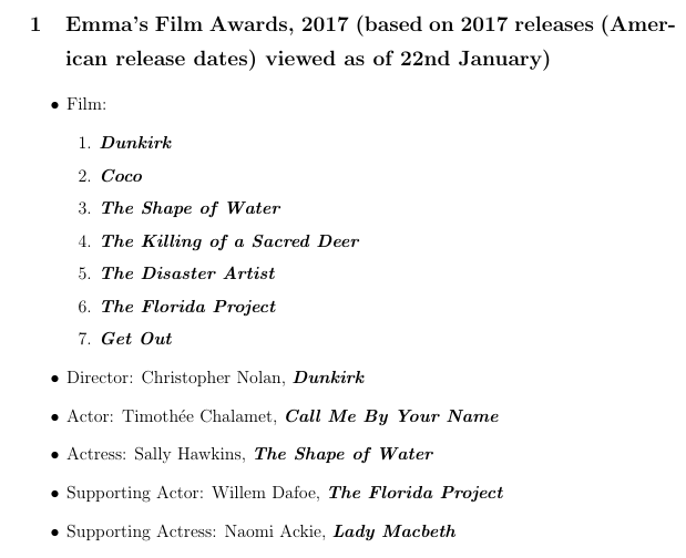 Finally, I know no-one asked for my opinion, but these are my personal awards for 2017 as things stand (having not seen Lady Bird, and a few other Oscar contenders):